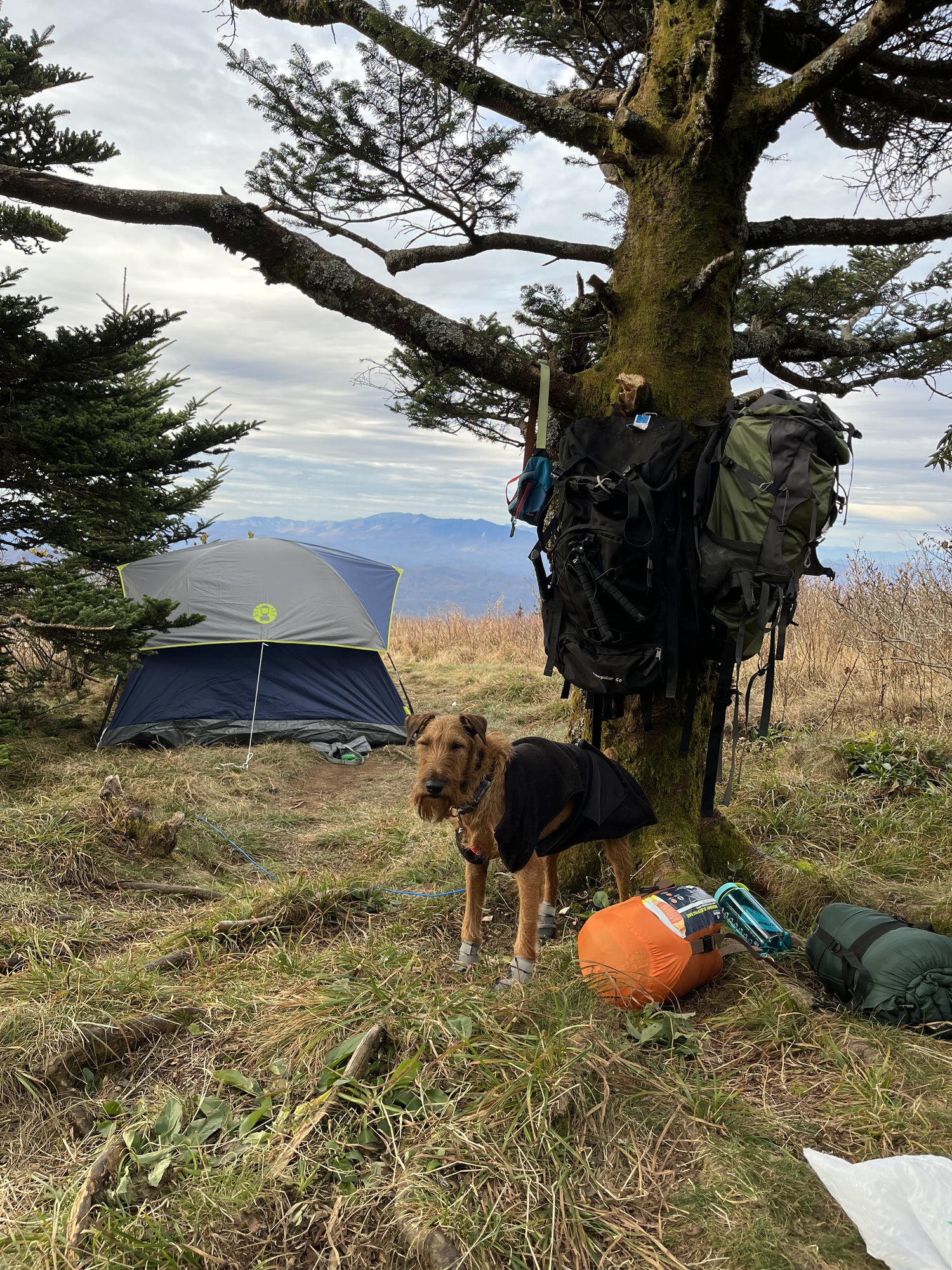 I can't forget about our very handsome Irish Terrier, Remi! When he's not chasing squirrels and rabbits in our backyard, he's joining us on road trips and other adventures. This is him barely tolerating his hiking shoes and sweater vest.